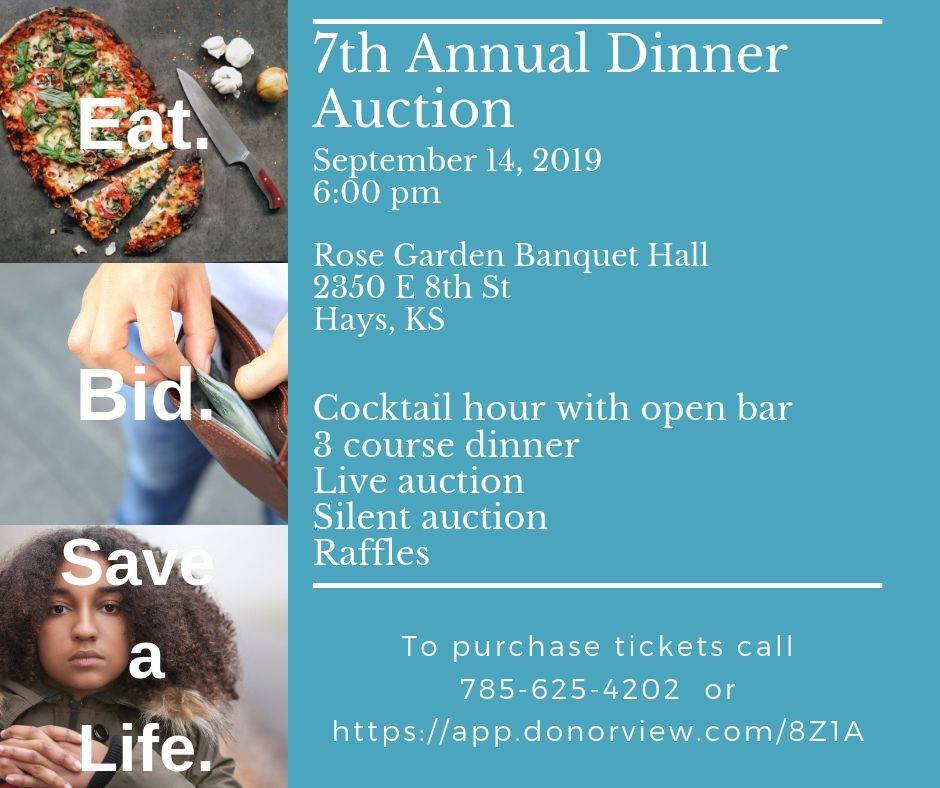 The Dinner Auction will be held at the Rose Garden Banquet Hall in Hays, KS. Festivities include a cocktail hour and open bar, followed by a delicious 3 course dinner, as well as a live and a silent auction. To purchase tickets, please contact Options at 785-625-4202. You can also purchase tickets through our Facebook page at https://www.facebook.com/OptionsHays.