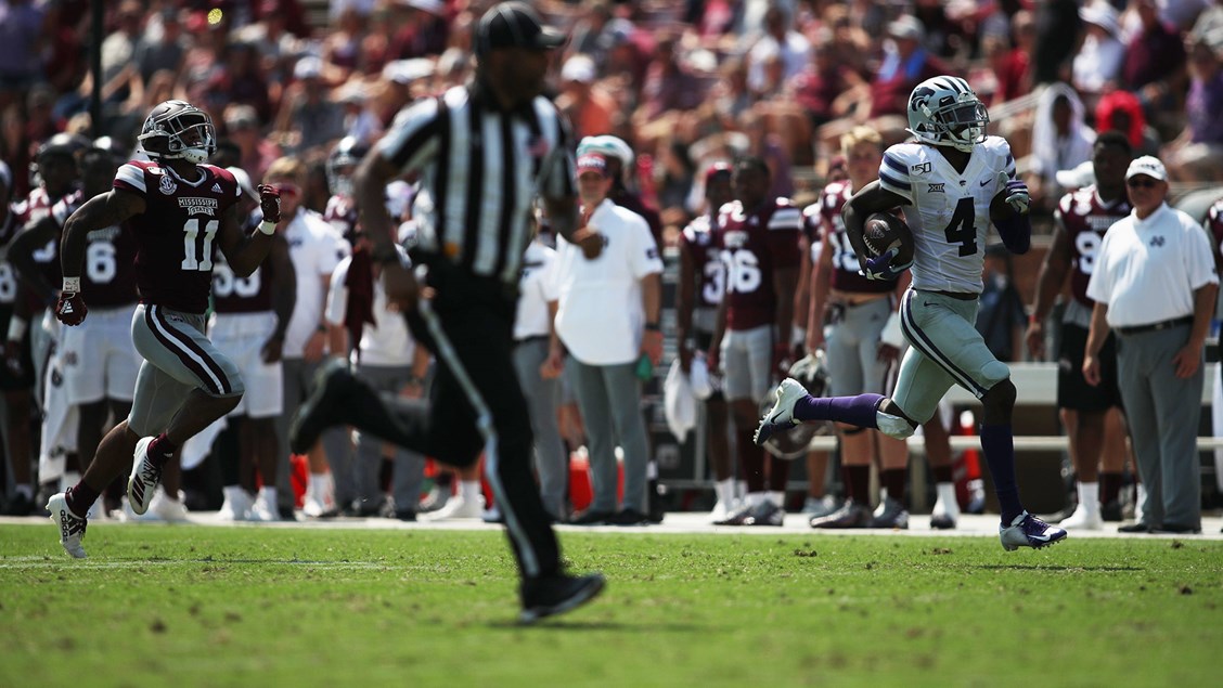 KSU (3-0) led 17-14 at halftime but trailed 24-17 in the fourth quarter. Then a 100-yard Malik Knowles kickoff return tied the game, and a 15-yard touchdown pass from Thompson to Dalton Schoen gave the Wildcats a 7-point lead with 5:37 remaining.