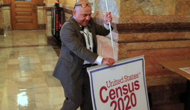 Carlos Urquilla-Diaz, a partnership specialist with the census, unfurled large banners and distributed printouts with census data ahead of Wednesday’s proclamation signing. He’s been traveling the state meeting with anyone who wants to know about the census.