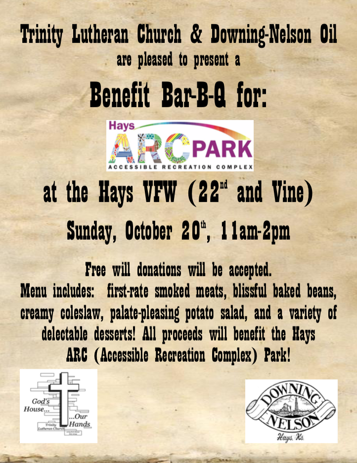 Barbecue will raise funds for ARC Park in Hays Posted on September 27, 2019 Find the event on Facebook.