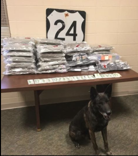 MITCHELL COUNTY —During a Wednesday traffic stop, a Mitchell County Sheriff’s Office K-9 located 40 pounds of marijuana and cash. Deputies also made an arrest.