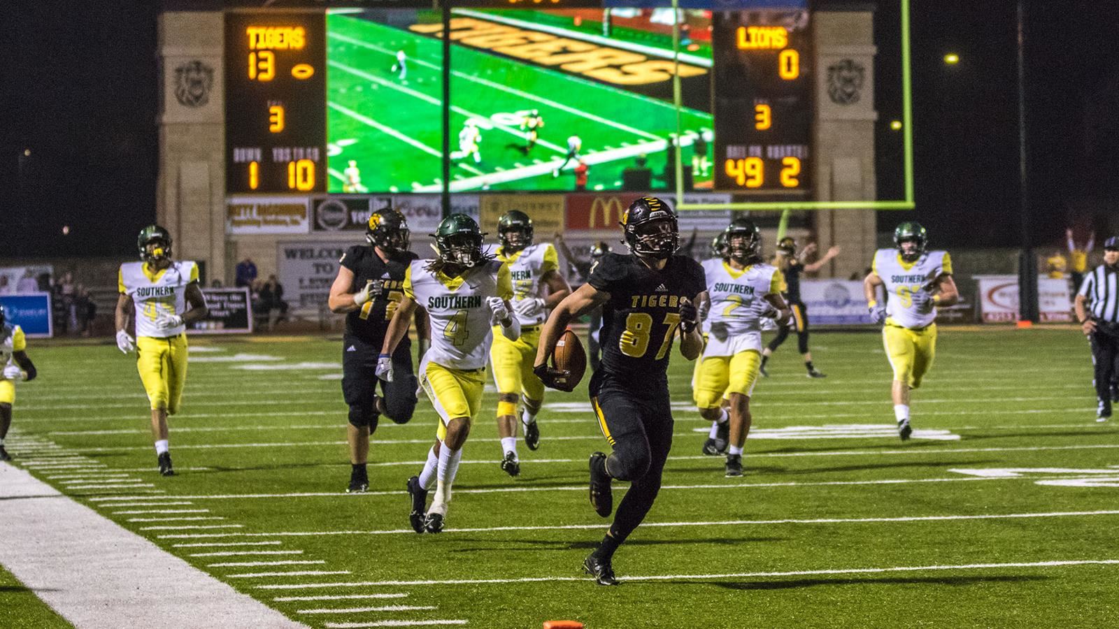 The Tiger defense was solid from start to finish, picking off four Lions passes and had three stops on fourth down. The Lions only points came on a 30-yard Riley Hathorn field goal late in the third quarter. They had seven tackles for loss an four sacks, two from Drew Harvey who led them with 12 tackles. Hayden Kreutzer had two interceptions with Tanner Hoekman and Isaiah Creal-Musgray getting the others.