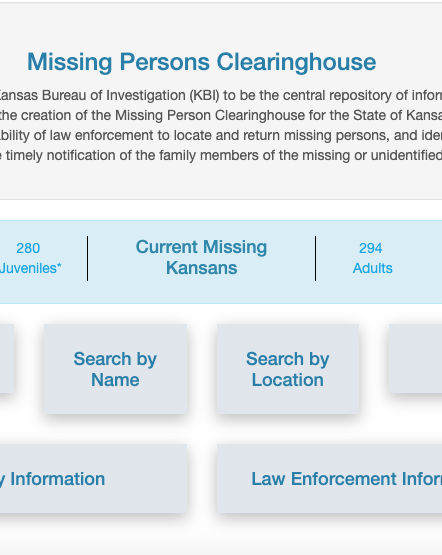 “Currently missing in Kansas are 295 adults and 280 juveniles. Behind each missing person is a family with unanswered questions. It is our hope that this website will become a valuable tool that aids law enforcement in answering the many questions that arise when an individual goes missing,” said Thompson.