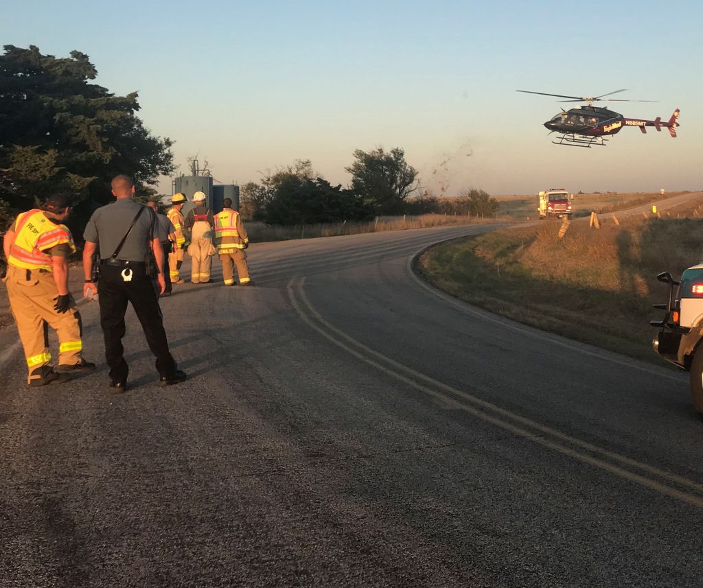 A helicopter was called to the scene, and Allison was transported by air ambulance to Wesley Medical Center in Wichita.