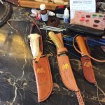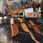 In the early 1950’s Kimple did a stint in the marine corp. and was stationed at an air base near Santa Anna California. The base had a hobby shop for GI’s to use and “I began going there when I wasn’t doing something important like walking guard duty,” Kimple said with a grin. There he got hooked on leather working and purchased a $6 leather working tool kit. He ordered leather and supplies from the Tandy Leather Co., so by trial-and-error and by following instructions supplies with various leather kits, he became a skilled leather worker.