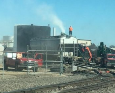 EMPORIA, Kan. (AP) — Crews are working to clean up a spill after a grain car tipped off the tracks just south of the Bunge Oilseed Processing elevator in Emporia.